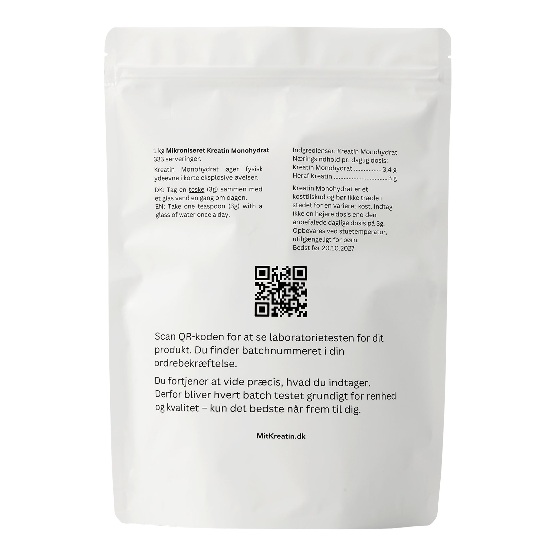 - 100% Mikroniseret Kreatin Monohydrat